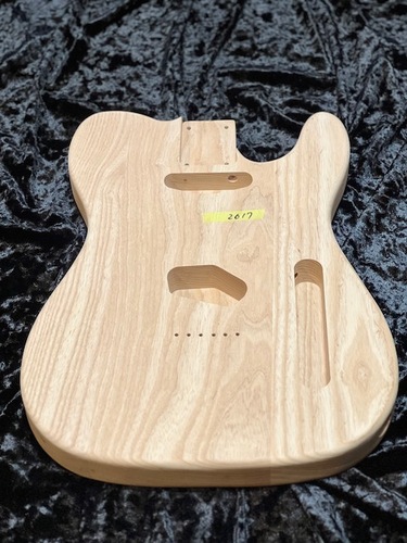 完成したギター全体の重さは、ネックの重量やハードウェア(ペグ・ブリッジ・電装)の重量、塗装の厚み等の影響を受けるため、ここからボディ単体の重さを正確に割り出すことはできません。
