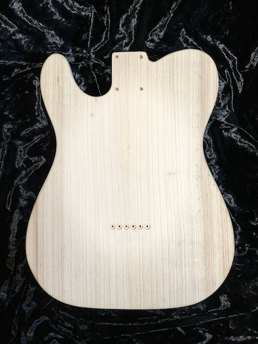 完成したギター全体の重さは、ネックの重量やハードウェア(ペグ・ブリッジ・電装)の重量、塗装の厚み等の影響を受けるため、ここからボディ単体の重さを正確に割り出すことはできません。